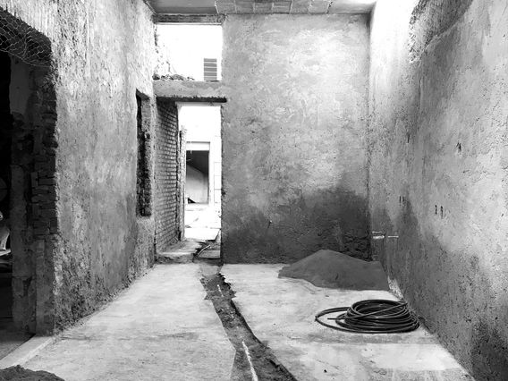 El inmueble remodelado para vivienda unifamiliar es testigo de dichos cambios. La intervención se encontró con una casa oscura, húmeda y poco ventilada, con patologías en revocos y filtraciones en techos. Se optó por demoler una parte de la cubierta del antiguo patio para controlar la luz y la ventilación. Durante el proceso de limpieza de los revocos se manifestaron las reformas que vivió la casa en el tiempo, la división del predio en dos, la invasión de la casa al patio trasero, la fragmentación de las áreas de servicio, etc. La pauta de dichas reformas pueden leerse en el cambio de material, desde el adobe hasta el ladrillo cocido, notablemente más grande que el actual.